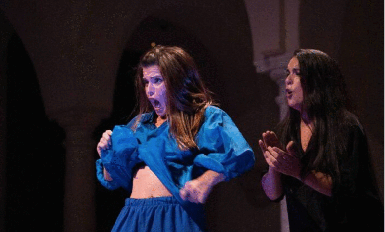 Suárez and singer Lola Dolores engage with music only they can hear, initially mouthing words and tapping along, but eventually exploding into tremendously exciting Flamenco song and dance. Shell suits become bolero jackets, the frills of the traje are suggested on the trim of trousers, and the pair fill the room with energy and humour. It’s comedic and almost pastiche, but it’s clear that if they were to play the music aloud and change to traditional costume, instant gravitas would be supported by a solid core of talent.