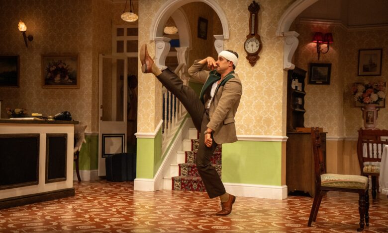 The showās plot is culled from a handful of the TV episodes (adapted by Cleese himself), so we get Basil mistaking a spoon salesman for a hotel inspector, Basil trying to conceal a win on the horses from nagging wife Sybil (Mia Austen), and a concussed Basil failing not to mention the war to a group of visiting Germans. The hotel manager is central throughout, with Sybil even written out for a while as she attends hospital to have an ingrowing toenail seen to. Maid Polly (Joanne Clifton) isnāt given a great deal to do, though she does get to share a sharp bit of farce with Basil as they bamboozle one of the hotelās exasperated guests.