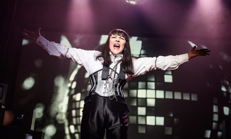 MUSIK, written by Jonathan Harvey with music by The Pet Shop Boys, is a precise, pitch-perfect hour of comic cabaret that not only confirms Harvey’s incandescent brilliance as a writer but also shines a worthy spotlight on Frances Barber’s extraordinary gift as an actor. The show is a fictional cabaret, The Billie Trix Story, the rambling recollections of a delusional, fame-obsessed singer who insists she has shaped every significant cultural moment from the 1950’s to the present day.