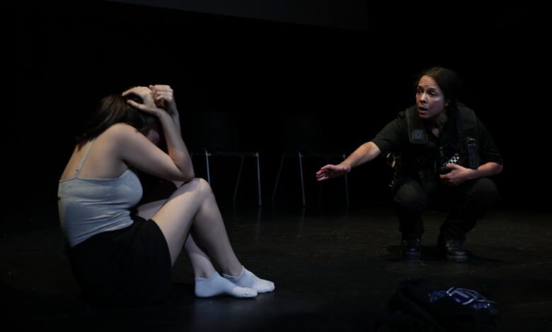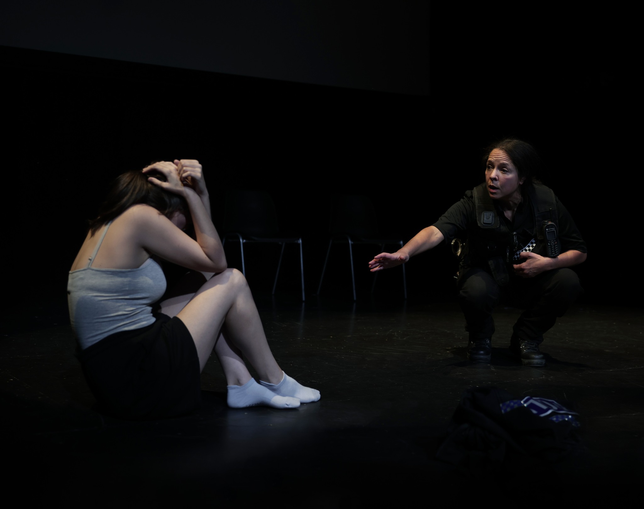 The use of the projector during a scene where it appears that we are participants in an in-house police training session works well and teases a moment of comedy, but doesn’t lean into that potential far enough and ends up feeling a little energetically limp. The production suffers slightly from a lack of fire. Big moments don’t have the emotional fuel to them that they could have. The danger of the Scowl Girl, another patient on the ward with B, never really feels convincing. The moment of a mother seeing her daughter put on a ward, or the impact of B being told that she can’t go back to her previous post at work, don’t pack a punch. There’s a tendency in the writing to lean towards telling the audience what is happening rather than letting us experience it. The ending, however, does eventually emotionally grab us, with its full circle moment of B and Scowl Girl meeting again in different circumstances; that alone does stay with you afterwards.