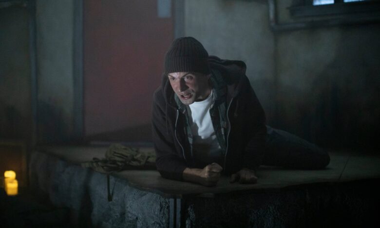 Staging by Lu Herbert and lighting by Jonathan Chan are used to dramatic effect, creating a genuine unsettling ambience in and around the audience. Clever use of silence and darkness, interrupted by a sudden burst of noise and bright light, are just what’s needed for the audience to jump out of their skins and, also, to signal a change in story. Whilst the staging is simple and static throughout, as a viewer you do not feel like you are looking at the same set for the short but perfectly-formed 80-minute production. This is thanks to the multi-functional design and, fundamentally, the power of the actors’ mesmerising performances. Full horror and shock effects are assisted by the subtle use of sound by Anna Short. Speakers placed around the chamber with an occasional whisper; a rustling of leaves or a shuffling made me and more than a few others look over our shoulders. The terrifying sound of a snapping bone during one of the tales drew audible gasps from the crowd.