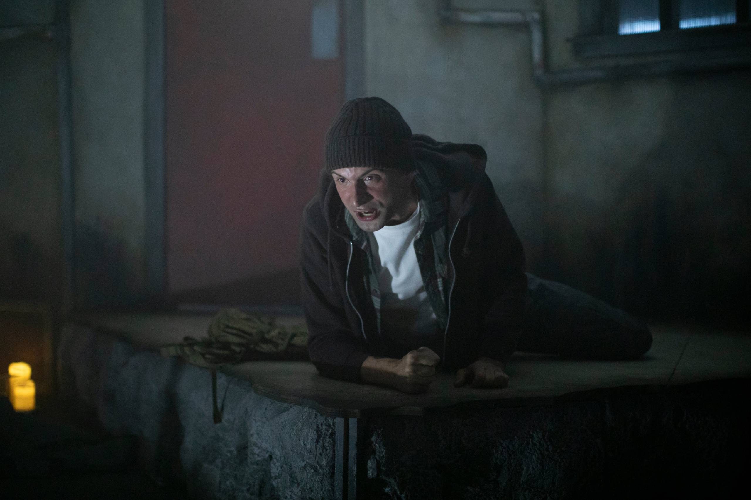 Staging by Lu Herbert and lighting by Jonathan Chan are used to dramatic effect, creating a genuine unsettling ambience in and around the audience. Clever use of silence and darkness, interrupted by a sudden burst of noise and bright light, are just what’s needed for the audience to jump out of their skins and, also, to signal a change in story. Whilst the staging is simple and static throughout, as a viewer you do not feel like you are looking at the same set for the short but perfectly-formed 80-minute production. This is thanks to the multi-functional design and, fundamentally, the power of the actors’ mesmerising performances. Full horror and shock effects are assisted by the subtle use of sound by Anna Short. Speakers placed around the chamber with an occasional whisper; a rustling of leaves or a shuffling made me and more than a few others look over our shoulders. The terrifying sound of a snapping bone during one of the tales drew audible gasps from the crowd.