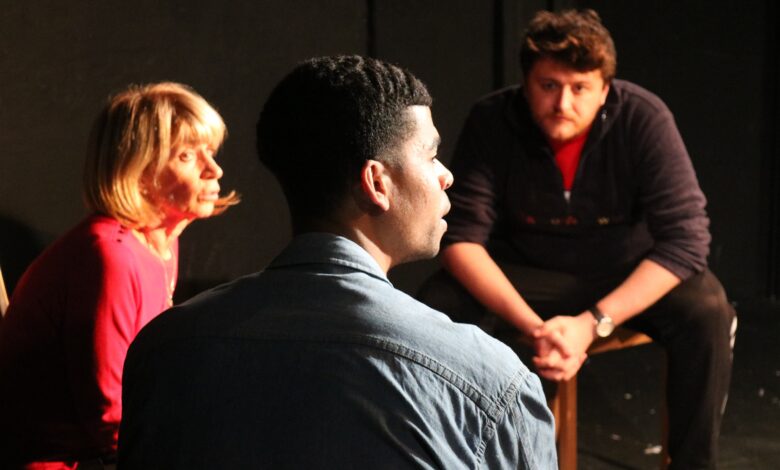 There is, unfortunately, no set design at all apart from three chairs. While this may serve to amplify the sense of isolation that dementia can bring for the sufferer and the strain on family life for those around them, the production cries out for visual metaphor. The underwater imagery that the text invokes – Mary’s near-drowning of Simon, the sense of submersion in fragmenting memory – remains unrealised, leaving the climax without theatrical urgency.