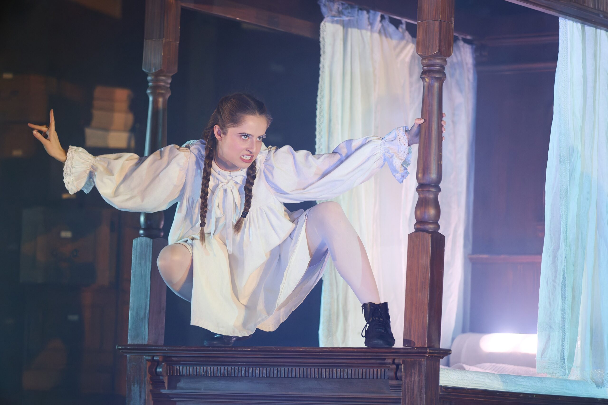 However, Alexandra Palace’s acoustics are the production’s most persistent obstacle. Lines vanish into the vast space, muddying emotional beats and dampening spectral atmosphere. Pacing falters too, some scene transitions really feel awkward and disjointed, breaking the atmospheric spell rather than sustaining it.