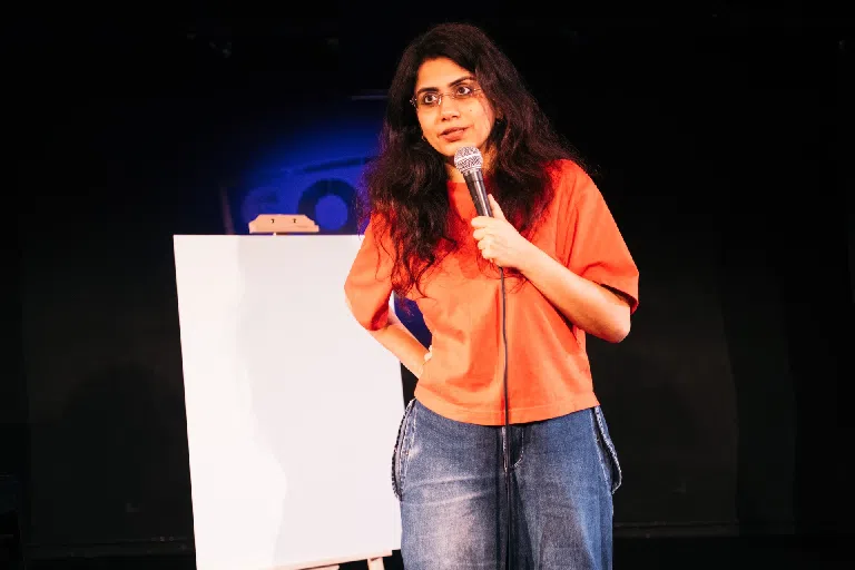 Prashasti Singh’s one-hour stand-up show Divine Feminine finds the comedian at a crossroads, using humour to take stock of the choices that brought her here. Raised in a traditional Indian household where authority and ambition were subtly coded as male, Singh grew up striving for a version of power she was never expected to inhabit. Now, at a point in life she jokingly refuses to define, she looks back with ambivalence rather than celebration, questioning whether rejecting prescribed femininity and pursuing independence has delivered liberation or simply a new set of pressures. It’s a strong premise, though one the show gestures toward more often than it fully interrogates.