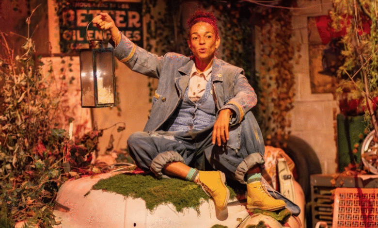 This room is again packed from floor to ceiling with items that the children can briefly investigate. Our hosts, Cosima (Rebecca Clark) and Ali (Amari Harris), tell us we are in a storytelling shop, and the stories all have types based on elements: air, earth, water, and fire. Children are encouraged to get actively involved: some speak with the performers; one individual talks about an object, thinking what element it might belong to; another takes a phone call. Most stand and listen.