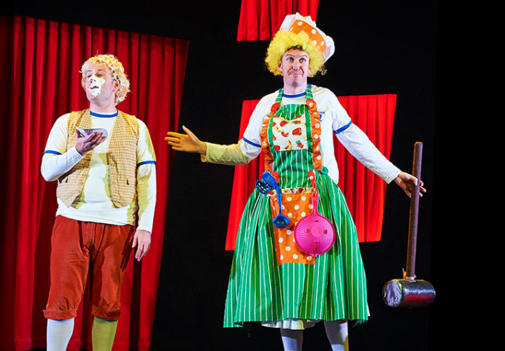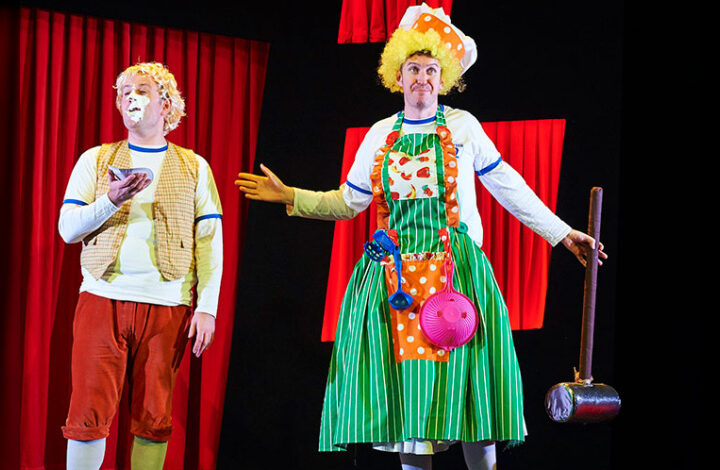 Clarkson and Trainor carry the show with tremendous energy and skill. They are joined by two excellent onstage sidekicks (also apparently the stage managers), James Gulliford and Georgia Corrigan (who has a wonderful singing voice). Together they propel a script that is fast and very funny. Panto conventions are lovingly explained for newcomers, even as the show simultaneously embraces and parodies them: the slapstick, the mess, the audience call-and-response, the toilet humour for the kids and the double entendres for the adults. All of these tracks run together at once, but they lead to the same joyous destination.