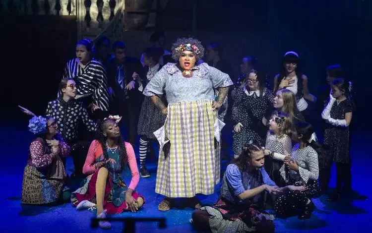 With a cast of 200 children and all sorts of special needs to accommodate, the stage is packed. You might expect they’d be tripping over each other moving between scenes, but tight direction (Bethany Hamlin, Jonny Morton, McInanny and Bossisse) and intricate, impressive choreography ensure everything flows seamlessly. The ensemble are a huge contribution to the production, hitting the harmonies with flair, accentuating the emotional story through movement and exuding a vibrant energy.