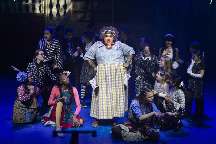 With a cast of 200 children and all sorts of special needs to accommodate, the stage is packed. You might expect they’d be tripping over each other moving between scenes, but tight direction (Bethany Hamlin, Jonny Morton, McInanny and Bossisse) and intricate, impressive choreography ensure everything flows seamlessly. The ensemble are a huge contribution to the production, hitting the harmonies with flair, accentuating the emotional story through movement and exuding a vibrant energy.