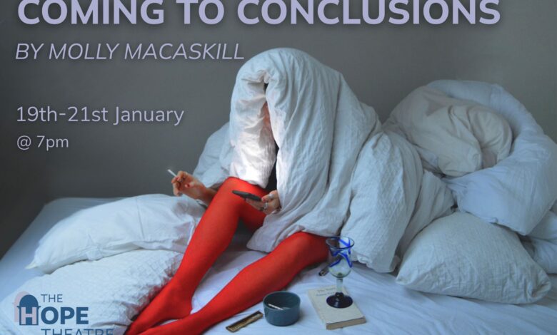 coming to conclusions is a coming-of-age story exploring how we find and lose ourselves in other people through the self-inflicted sexual chaos of a queer university student. From the comfort of her bedroom, we are with her through sex, situationships and spliff fuelled philosophical discussions. As people come in and out of her life and her bed, will they help her come to conclusions about her identity and her future?