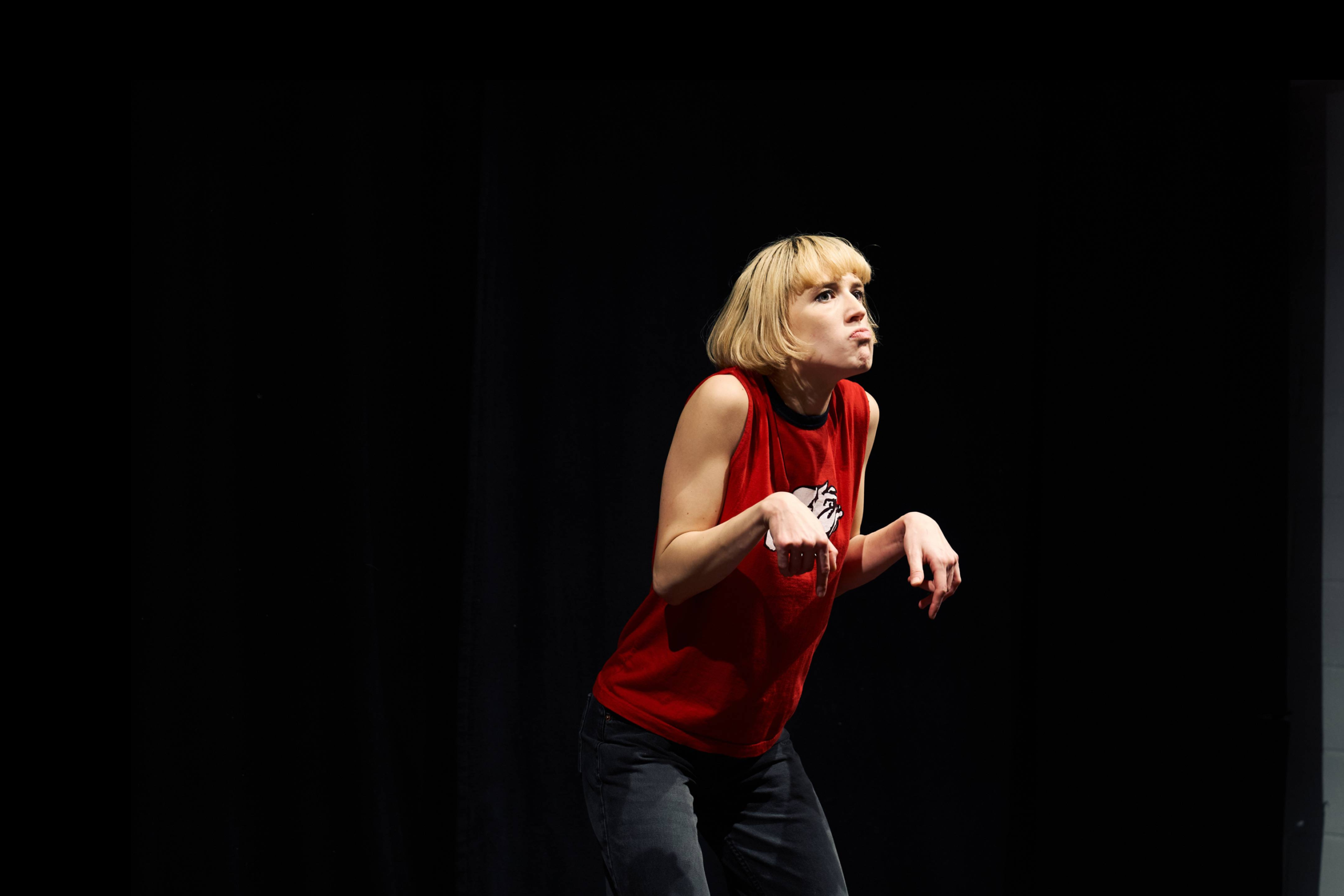 Curiel owns the space with a performance full of peaks and troughs. Highly energetic chaos suddenly changes to quiet stillness which still conveys an air of menace and unpredictability. The uneven nature of the piece adds to the overall feeling of unsettling suspense, never really knowing what to expect next. It must be physically and emotionally draining performing this, I was exhausted just watching her. There is some audience interaction which is a bit confrontational, with people not really knowing whether they were supposed to react and/or reply. This led to a few moments of awkward silence which appear unplanned but do blend in with the general feeling of unease.