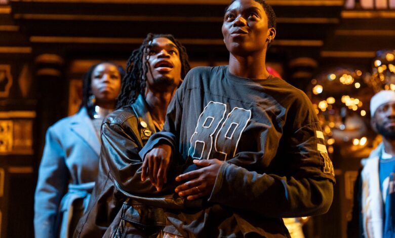 Intersecting with Shakespeare’s elite heritage, this story about Black lives achieves unusual gravitas and validity here, where flickering candles suggest the ephemerality of life and Fynn-Aiduenu is not just a director but a world-maker. He skilfully blends pop culture – from TV to marching bands – into the traditional space, creating a multi-dimensional universe where universal human stories are described through a Black lens. He pushes the boundaries that contain the narrative, surrounding the spectators in the action from the encircling corridors. We become part of Deep’s world, reflected on shining silver domes onstage, sharing space and perhaps complicity. A new blend of audience is created – forged from the hip hop world and that of classic theatre.