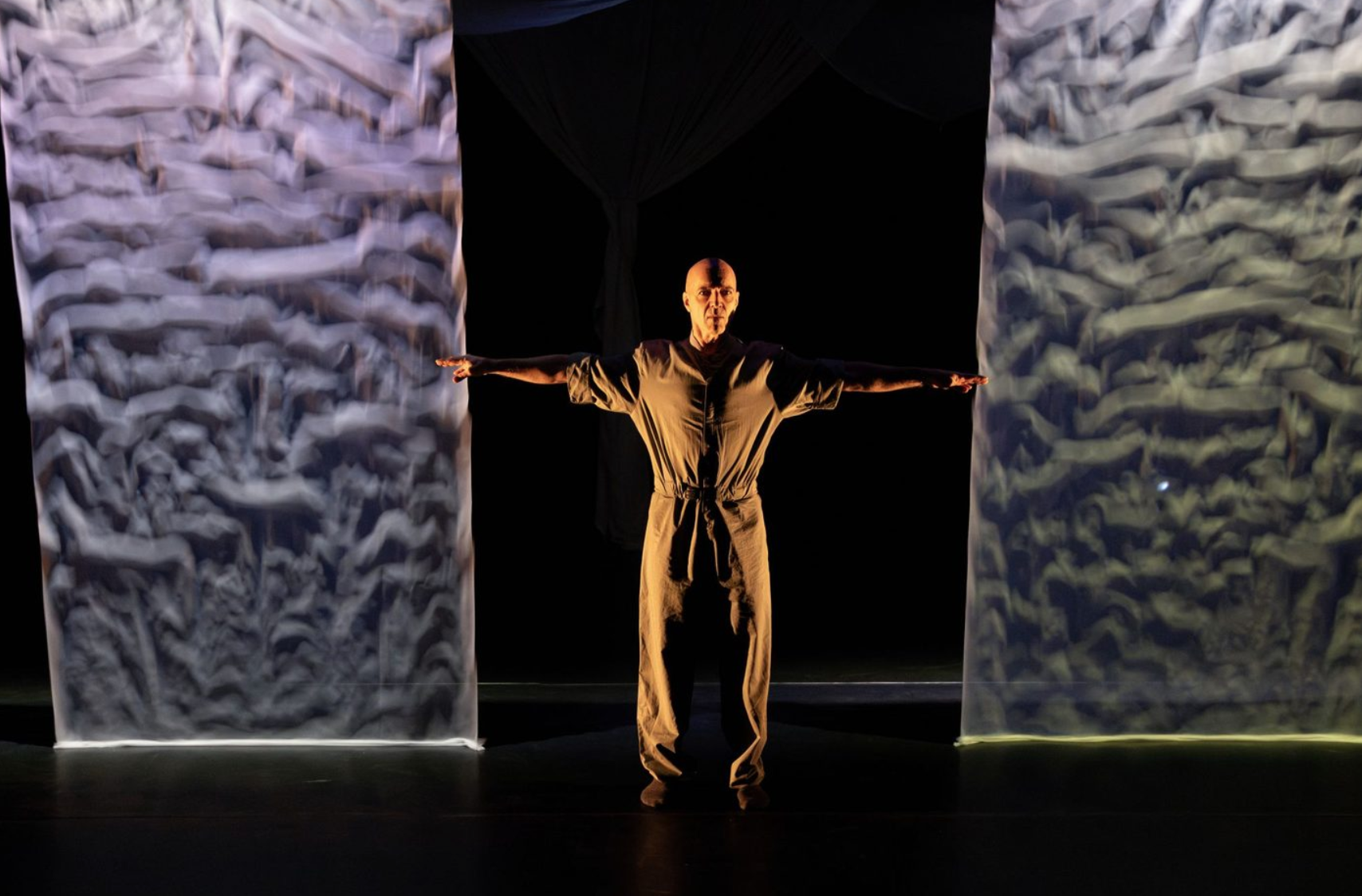 By way of finale, Maliphant himself performs a new work entitled ‘In a Landscape’. Here, the dancer’s relationship with the space is again conducted through light, but here it is amplified through panels of sheer fabric that challenge us to identify the presence and role of Maliphant himself. Through a series of short episodes, he manipulates the movement of the fabric in the path of projected light so that his presence as a dancer is often illusory. The effect is poetic and intense. Despite being dance in its purest most abstract form, one cannot fail to engage with the resultant emotional storytelling. The finale in particular is a stunning exercise in the power of imagination, technique and the rigour of simplicity.
