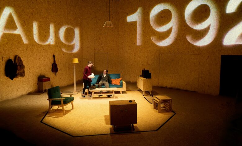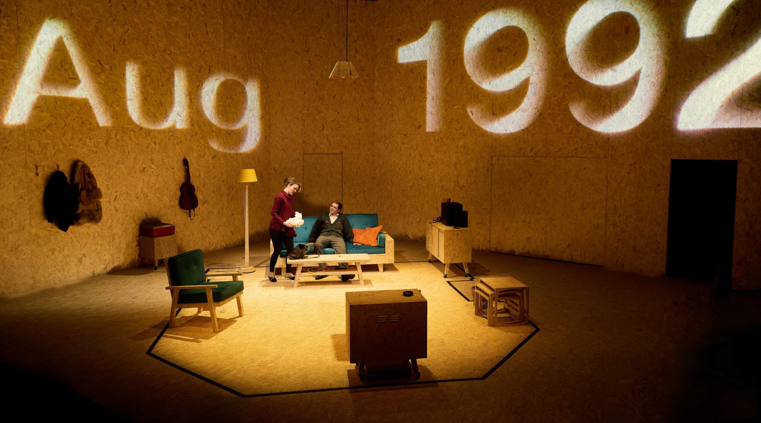 Real events signpost the passage of time. There are references to decimalisation, the common market, Star Wars in the 1970s. John Lennon’s murder, the miners’ strike, CDs, Live Aid in the 1980s. In a few seconds of shocked silence, the events of 9/11 are perfectly portrayed. And so it goes, right up to the heartbreaking effects of Covid-19 on a person living alone. Kathy’s mental and physical decline at this stage is cleverly signalled by the projected dates initially becoming blurry and then failing to appear at all. It is beautifully acted, but this part of the play feels a little overdone and drawn out compared with the frenetic pace of the previous action. As the house is resold another young couple with a baby on the way take possession and the circle of life continues.