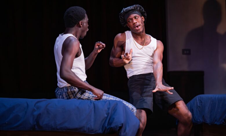 Terique Jarrett plays Pharus, the talented choir lead who refuses to diminish who he is in the face of bullying for being gay, with Freddie MacBruce playing his caring, humorous roommate AJ. Both Jarrett and MacBruce bring warm energy, playfulness and heartfelt emotion to their scenes and are a joy to watch. Rabi Kondé plays Bobby, the Headmaster’s nephew who, whilst dealing with his own conflicting emotions, doesn’t find it easy to accept Pharus and bullies him. Khalid Daley plays the chatty, comedic Jr who is working out who he trusts and where he wants to stand, whilst Michael Ahomka-Lindsay plays the conflicted David who is aiming to become a pastor but is troubled by his own self doubt and the pressure and expectation of being a scholarship student. Together they truly create an ensemble show, with beautiful acapella vocals from all, high sentiment moments of dialogue and a powerful, poignant production.