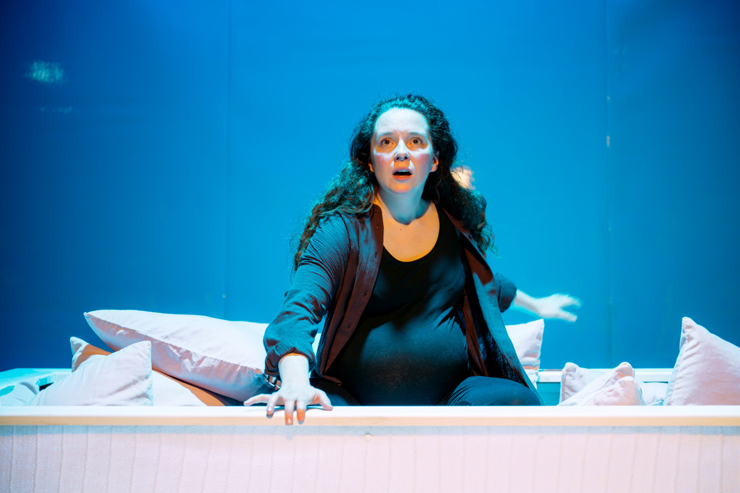 On arrival at the Traverse Theatre, the audience finds a bare white stage graced by what looks very like a wainscoted rectangular trough full of flesh-coloured pillows. It’s domestic, yet at the same time something unfamiliar. This is an intriguing start, and a design which unveils some pleasing surprises as the show unfolds.