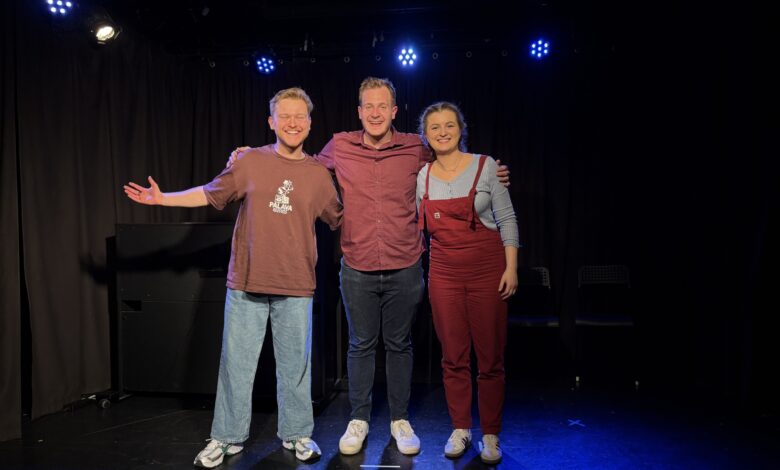Other than that, Delroy in particular is very at home onstage; his ability to switch easily into many different accents adds excitement to the games. Collett brings a comical, somewhat camp energy, and Kahane is very funny pretending to be aroused at awkward silences. They make a watchable, lighthearted show with highlights and dips, but with so much variation and so little structure or theme, it ultimately lacks a strong identity. There is nothing terrible here, but not much that stands out either.